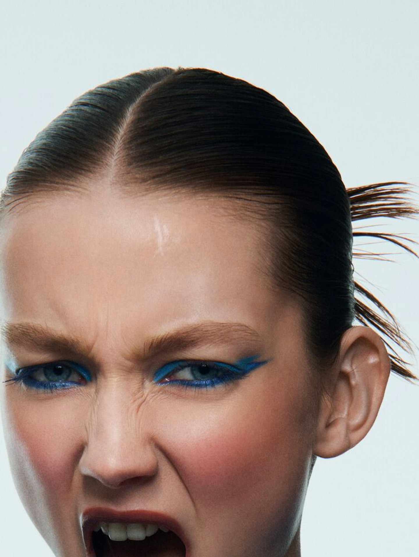 “A great entry point for blue eye make-up are soft, diffused accents,” says Nummela. “Dabble with product – you can apply shadow or kohl – and warm up the rest of your face with toasty shades of blush.”