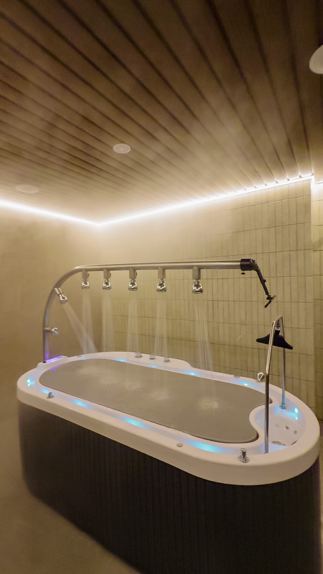 Before we knew it, it was time for the Vichy shower to shine. Seven shower heads—with massage-level pressures—swung on a pivot, offering an unprecedented coverage for the last step of the process. Occasionally, the therapist would divert the angle of the shower heads for better directional stream. Truth be told, we never thought a horizontal shower would be that revolutionary. But consider us a convert at this point.