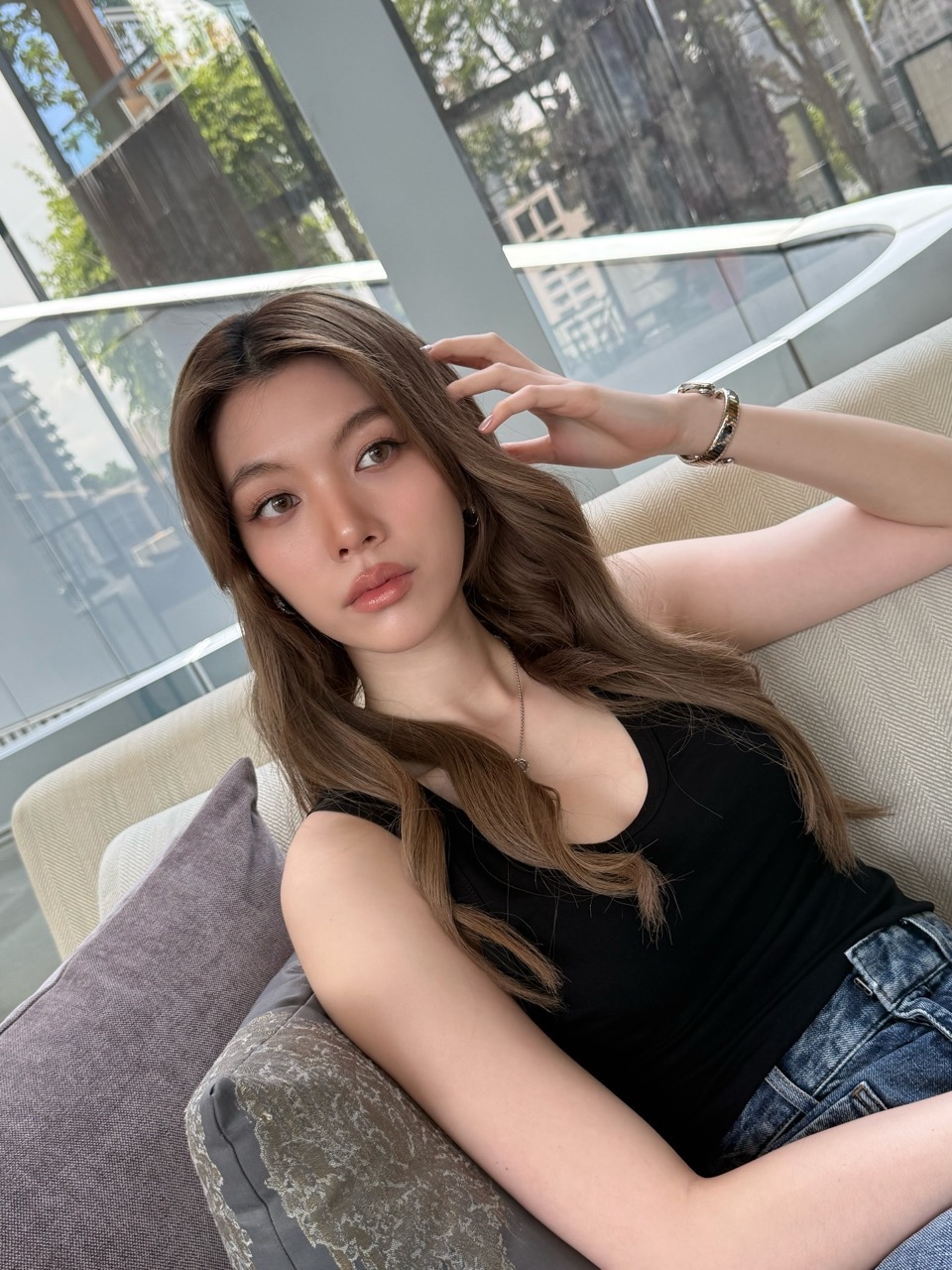 Orm Kornnaphat follows Baipor’s lead by keeping it soft and natural with just a whisper of warm blush that subtly lifts her complexion. The contour work around her nose is slightly heavier, adding a sun-kissed glow without sharpness, while a nude lip keeps the look balanced and effortless.