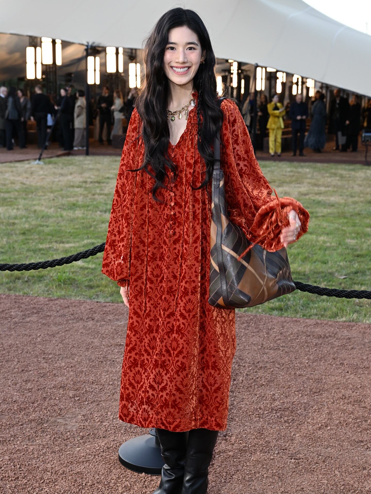 It was all about statement coats, velvet, and detailed embellishments—Seungmin of Stray Kids looked dapper in a cross-stitched sweater inspired by a 15th-century tapestry, while Korean actress Jung Eun-chae donned an elegant burnt orange dress with velvet floral motifs. Brand ambassador Wu Lei looked handsome as ever in a coat that took the classic Burberry trench silhouette and gave it a corduroy twist. Stars like Bright Vachirawit and i-dle’s Shuhua also made appearances, looking cosily wrapped up in chic coats.