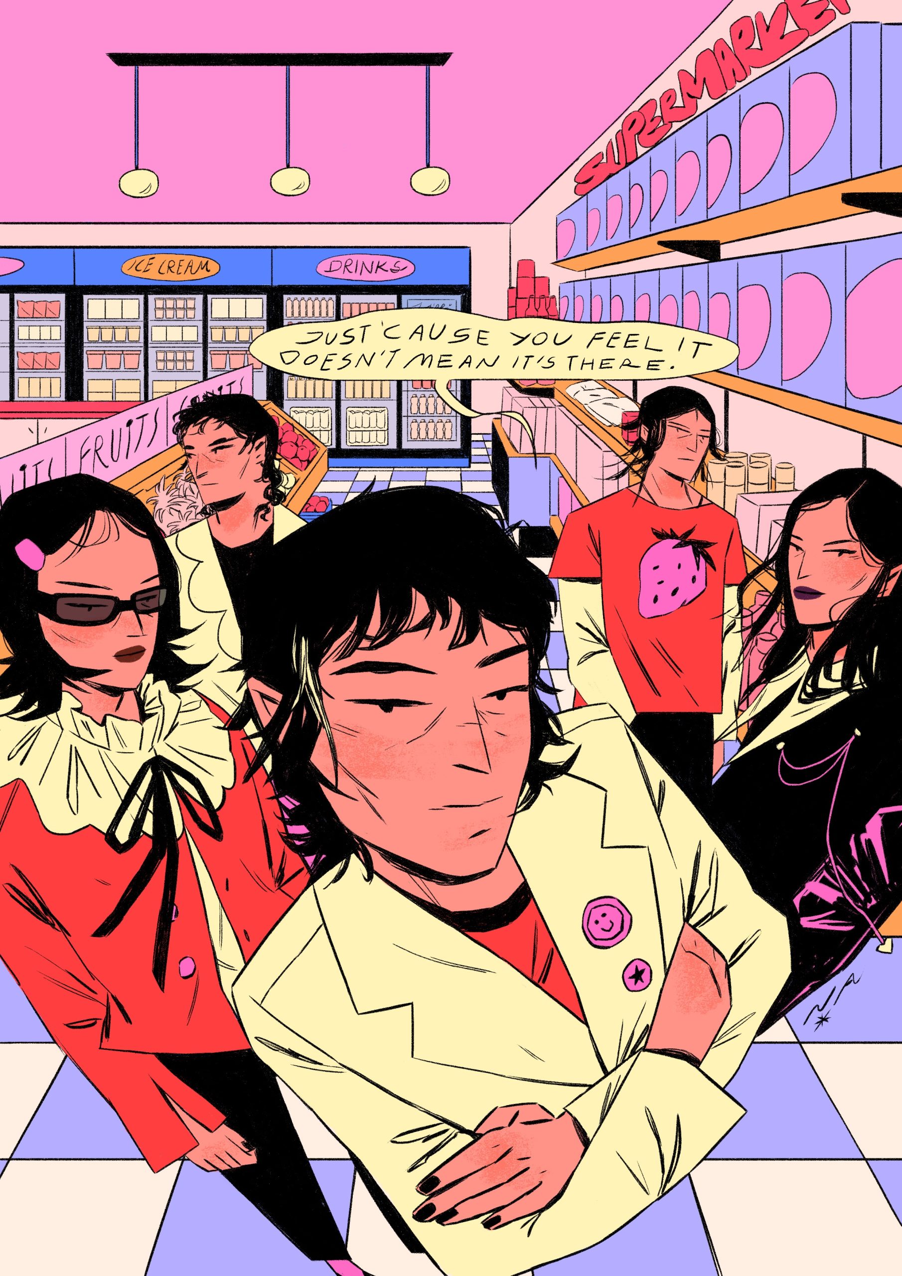 Illustrator Nurul Atika is known for her sharp, clean comic line art set against contrasting pastel palettes. It is a combination so distinct that people can’t help but recognise her work the moment they spot it. Her illustrations lean into fantasy and melancholy, with a deeply personal thread running through most of her characters, many of whom share her signature micro bangs.
