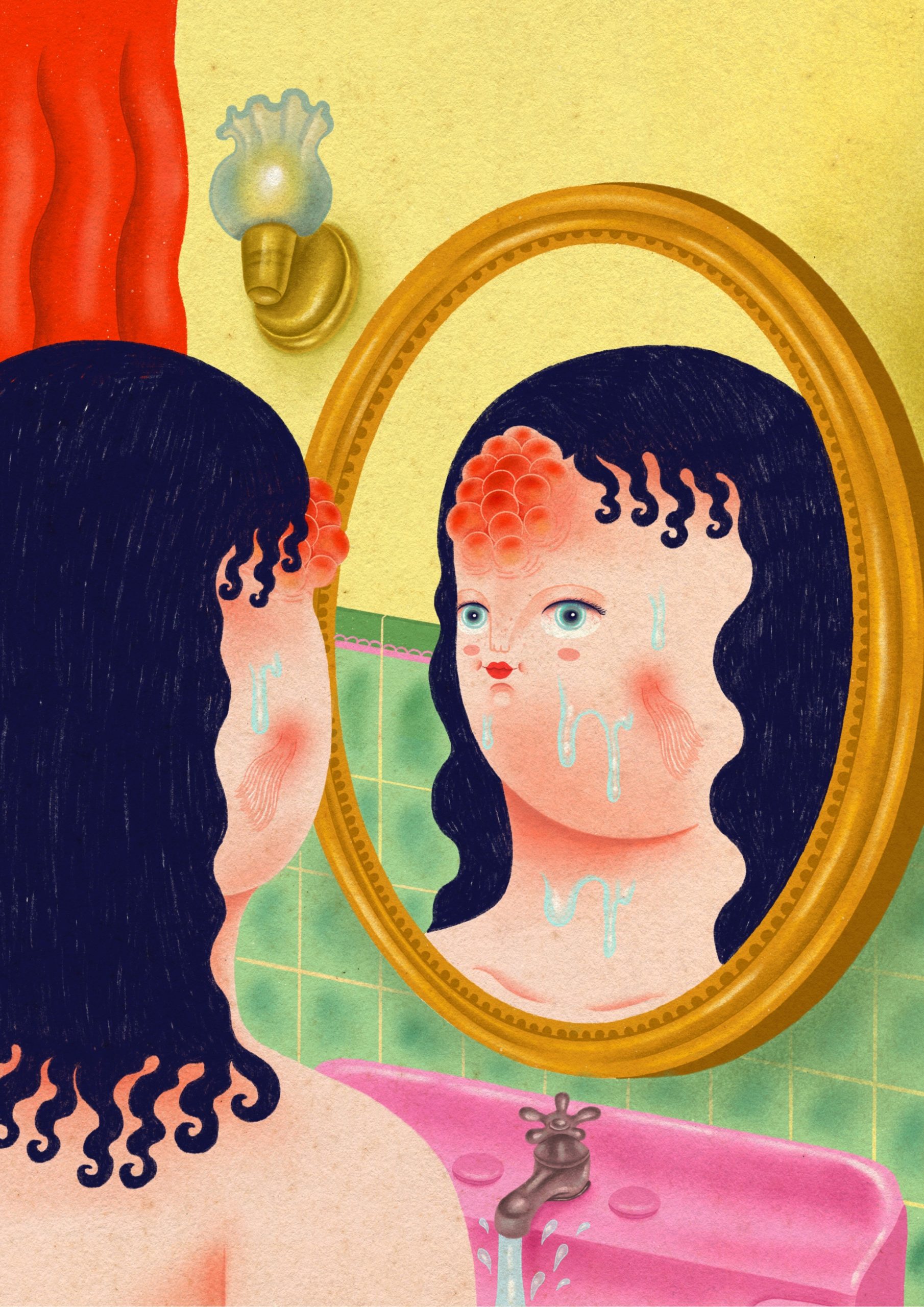 She works digitally on iPad with Procreate, bringing her illustrations to life through quirky characters dressed in expressive costumes and larger-than-life emotions. The colour palette strikes a careful balance—slightly retro, neither too vivid nor too muted—creating a mood that feels both nostalgic and full of life.