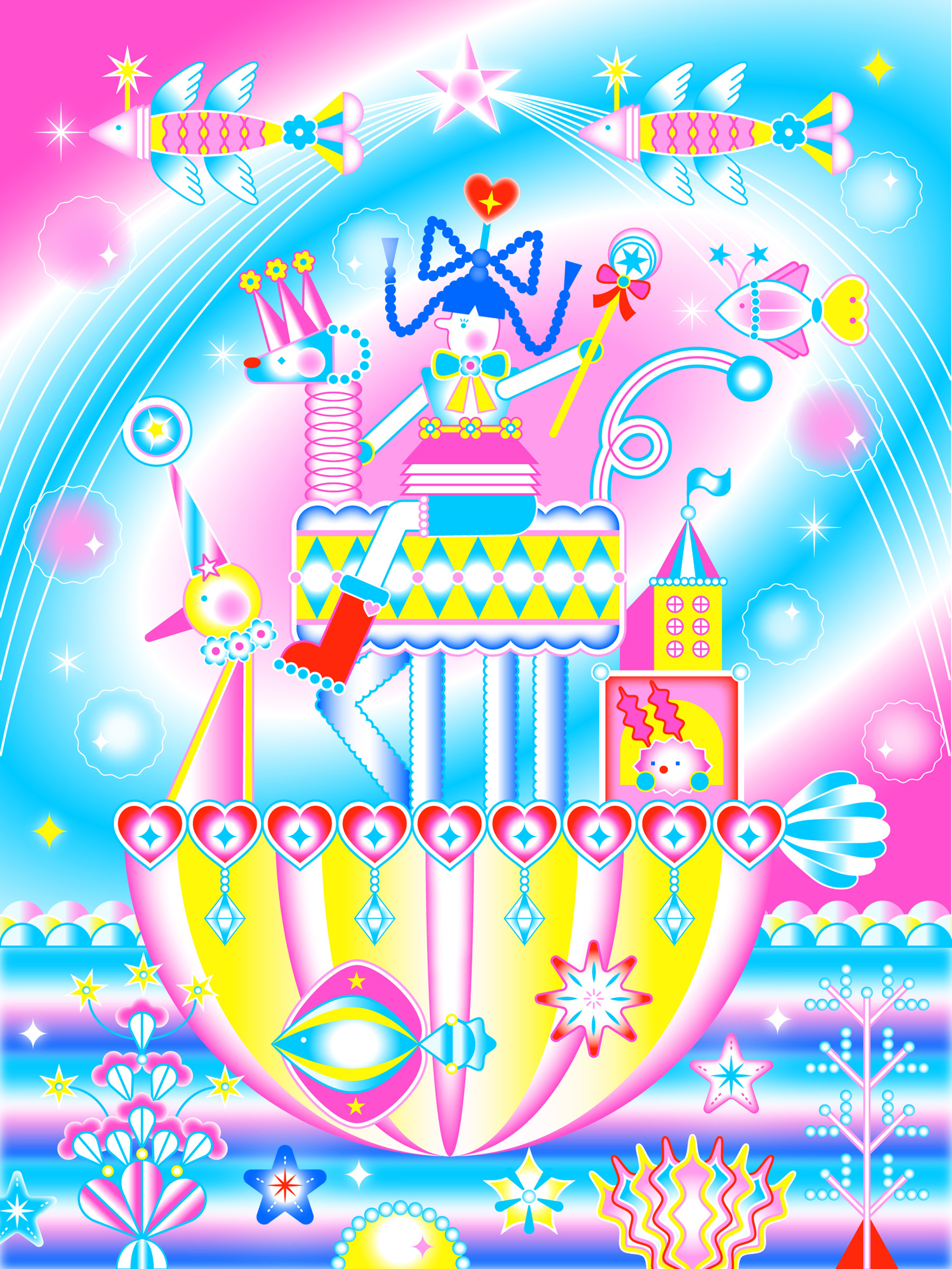 Vanissa Foo is the artist behind Humana, a creative practice built on bold, vector-based illustration that balances maximalism with graphic precision. Her work pulls you into playful, surreal worlds constructed from clean shapes and vibrant colour—it’s a fantasy world rendered with a designer’s eye. Inspiration tends to arrive in quiet, unexpected moments, such as flipping through a vintage picture book or simply when something random sparks an idea. What makes her work immediately recognisable is the signature combination of red and pink, a palette that feels bold and maximalist while staying grounded in simple geometric forms. It’s a balance that gives her illustrations a joyful, larger-than-life quality that’s difficult to turn away from.