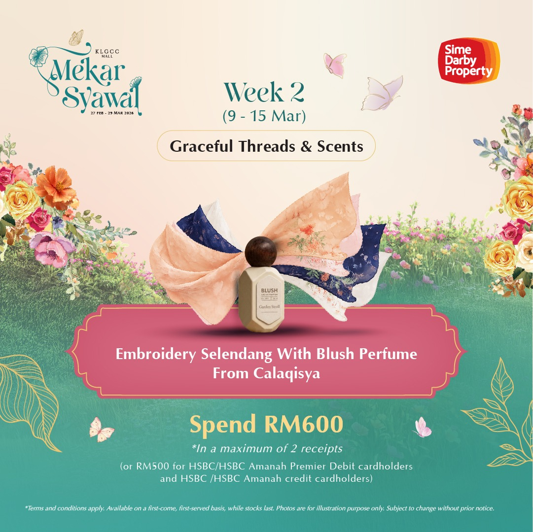 If you’ve been looking for the perfect excuse to refresh your wardrobe, stock up on festive treats, and walk away with weekly premium prizes, KLGCC Mall has just made it very easy for you. Running from 28 February to 29 March 2026, the Mekar Syawal campaign transforms the mall into a lush floral wonderland—and rewards you for spending while you’re at it.