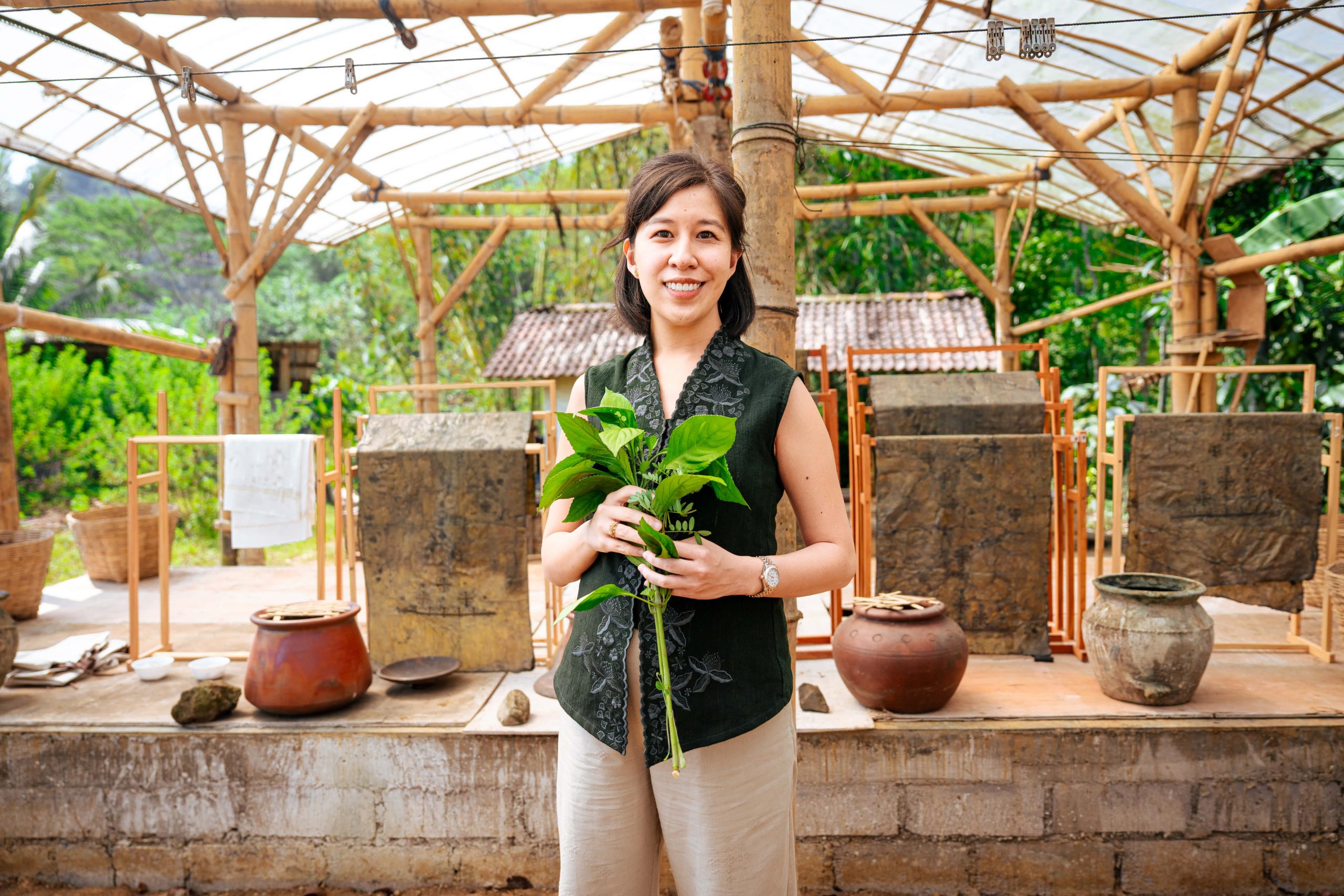 Indigo, she explains, is both metaphor and method: a plant that embodies transformation. Traditionally, the indigo that thrives in Ambarawa needs full sun, which would have meant cutting down trees. Instead, Riadini-Flesch introduced Assam indigo, a hardier varietal that flourishes in the shade, allowing the forest to remain intact. The result is a thriving ecosystem where crops, soil, and community sustain one another. “The land becomes alive again,” she says. “And so do the people.”
