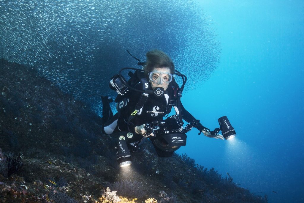 Her love for the sea had humble beginnings. Growing up in New Jersey, she spent endless hours by the pond in her back garden, watching fish dart between reeds and tadpoles transform before her eyes. That early curiosity led her to Duke University, where she earned her PhD and began groundbreaking research on marine algae—the first step in what would become a remarkable career beneath the waves.