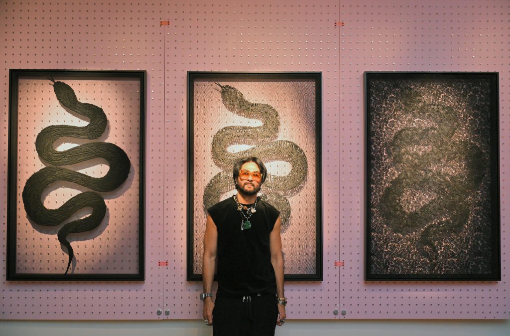 Fashion meets reflection in MYTH Creation—a new exhibition by Dato’ Sri Bernard Chandran showing at the renowned designer’s own studio, just ahead of the Lunar New Year. Inspired by the Year of the Wood Snake and Chandran’s period of silent meditation in India, the exhibition marks an introspective chapter in his creative journey. Debuting alongside MYTHS of Aura, a series of four works focused on renewal, spirituality, enlightenment, and passion, MYTH Creation represents Chandran’s metamorphosis into who he is today.