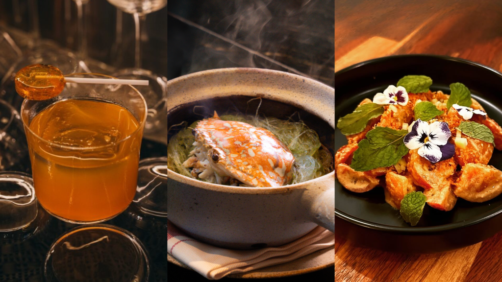 La Lune is a dreamy, dimly lit hideaway that merges creative mixology with eclectic bites. With celestial and boho-chic interiors, it’s the kind of place that invites you to linger. The cocktail list is as creative as it is delicious—sip on the Boston Lala, a unique blend of kombu-infused sake, Shaoxing wine, and ginger. Pair it with their signature Lala Tong, a comforting clam soup enriched with wolfberries and topped with ikura and tobiko. For a more tropical vibe, the Jungle Garlic provides a tiki-style mix of rums and exotic fruits, best enjoyed alongside the aromatic Truffle Siew Mai or crispy Rosemary Chicken Thighs.