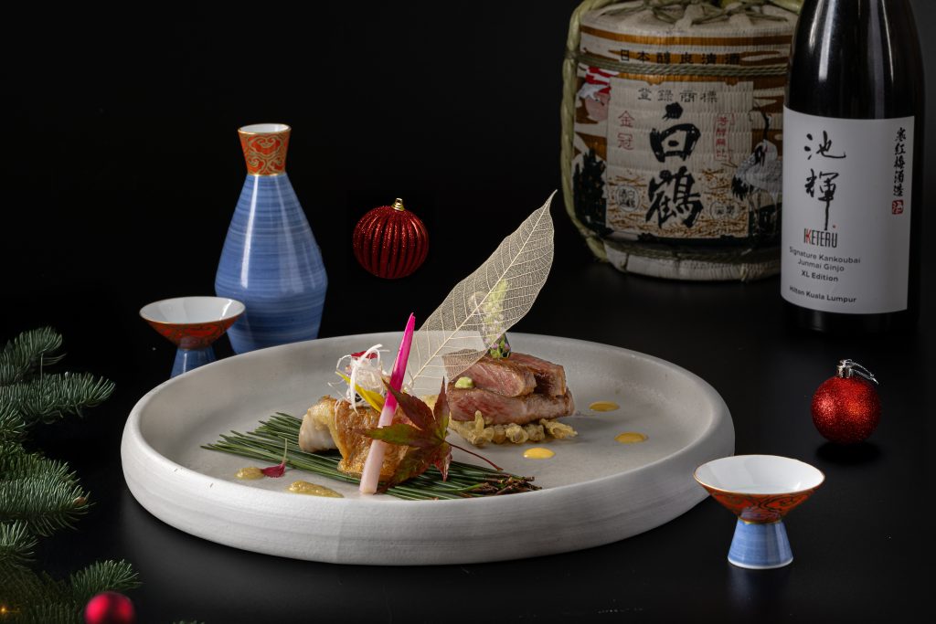 Iketeru brings a lavish spin to the season with Chef Taka’s Festive Omakase—a standout alternative for those looking for something to elevate their usual holiday spread. The meal rolls out in indulgent waves, with items such as Monkfish Liver and Red Seabream, moving into a rich, silky King Crab Chawanmushi, and A5 Wagyu dressed in a smooth red wine miso sauce. And as a little holiday present, Hilton Honours members can enjoy 10% off (excluding the 24th and 31st of December).