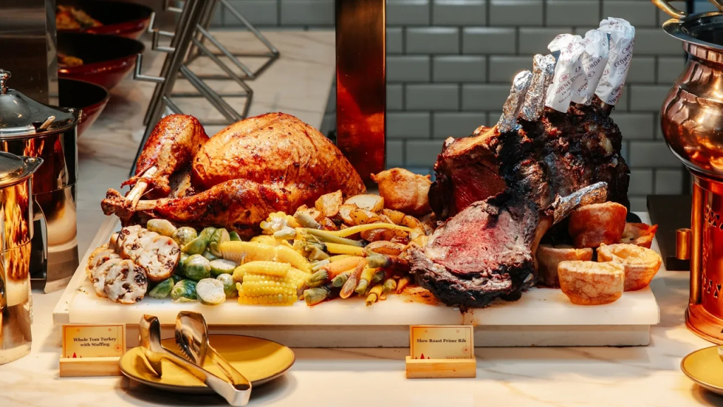 At the Hilton Kuala Lumpur, Vasco’s is offering a Christmas Eve dinner of bold flavours and richness. Begin with the opulent Pearl Oyster Experience, then move to the sweet, buttery Baby Boston Lobster, or for a spicy twist, the Korean Cheese Dakgalbi can add a lively kick before the star of the evening—a slow, unimaginably tender Six-Hour Roasted Venison. The restaurant offers all-day dining throughout the holiday season with other charming menus such as the Festive International Buffet Lunch, of which prices can be found on their reservations page.