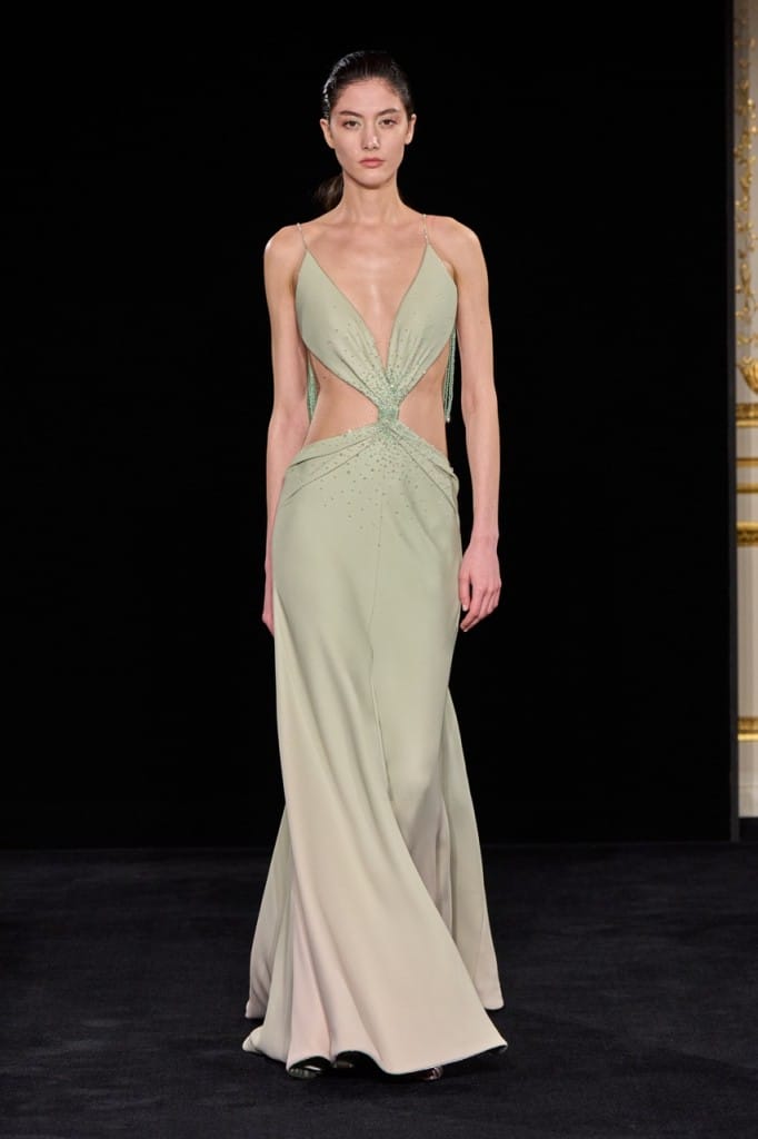 Silvana Armani also made her couture debut in the shadow of an icon, following Giorgio Armani’s passing last September. As one of the few women at the helm of a major fashion house, her take on couture becomes especially significant—and it manifested in a quietly elegant collection that shone in its attention to silhouette and embroidery.