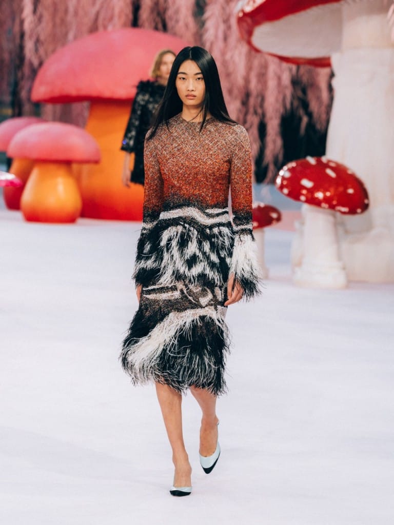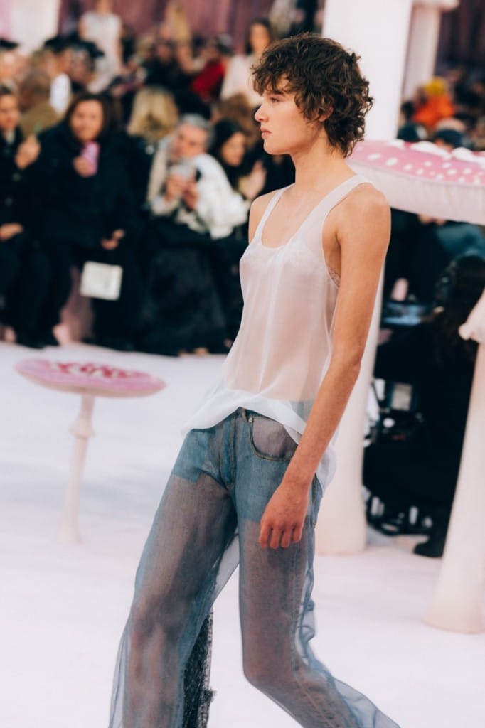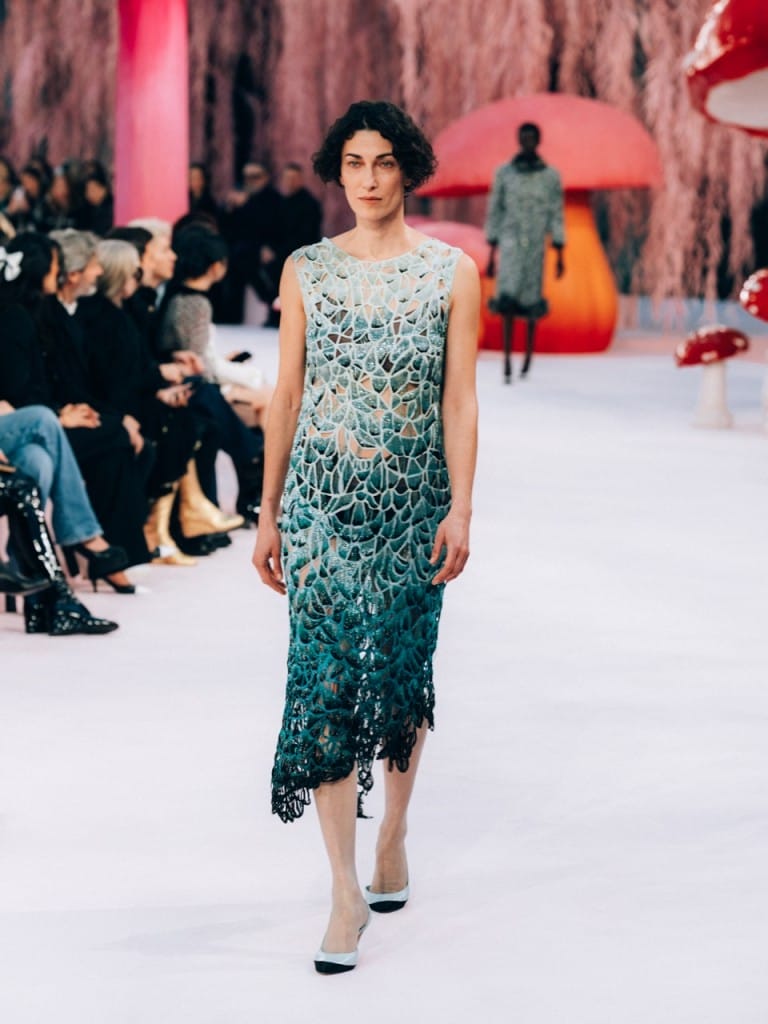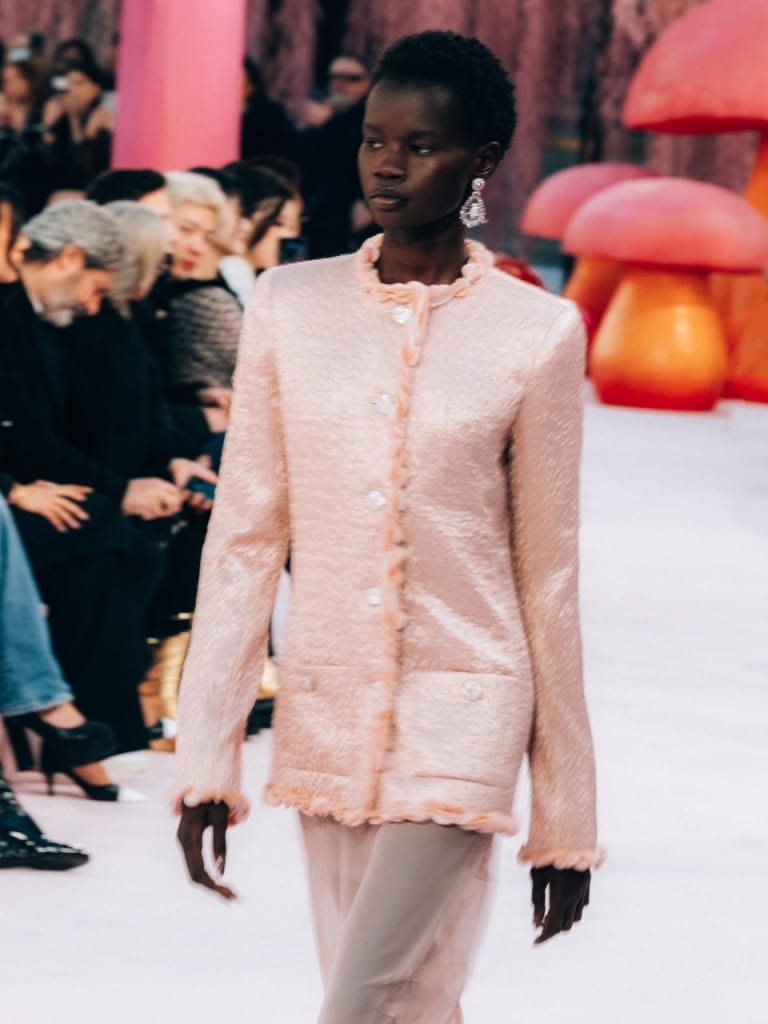 Matthieu Blazy tackled Chanel’s weighty couture legacy by making it feel as light as air. The show’s enchanted woodland setting, replete with pastel pink floors and giant toadstools, led to speculation that Blazy would lean into the fantastical and theatrical. He did the exact opposite. Blazy presented a collection that reminded us that craft is often in the details, not the spectacle. The show opened with Chanel suits reimagined in diaphanous layers of silk muslin, bringing an airiness that carried on throughout the presentation.