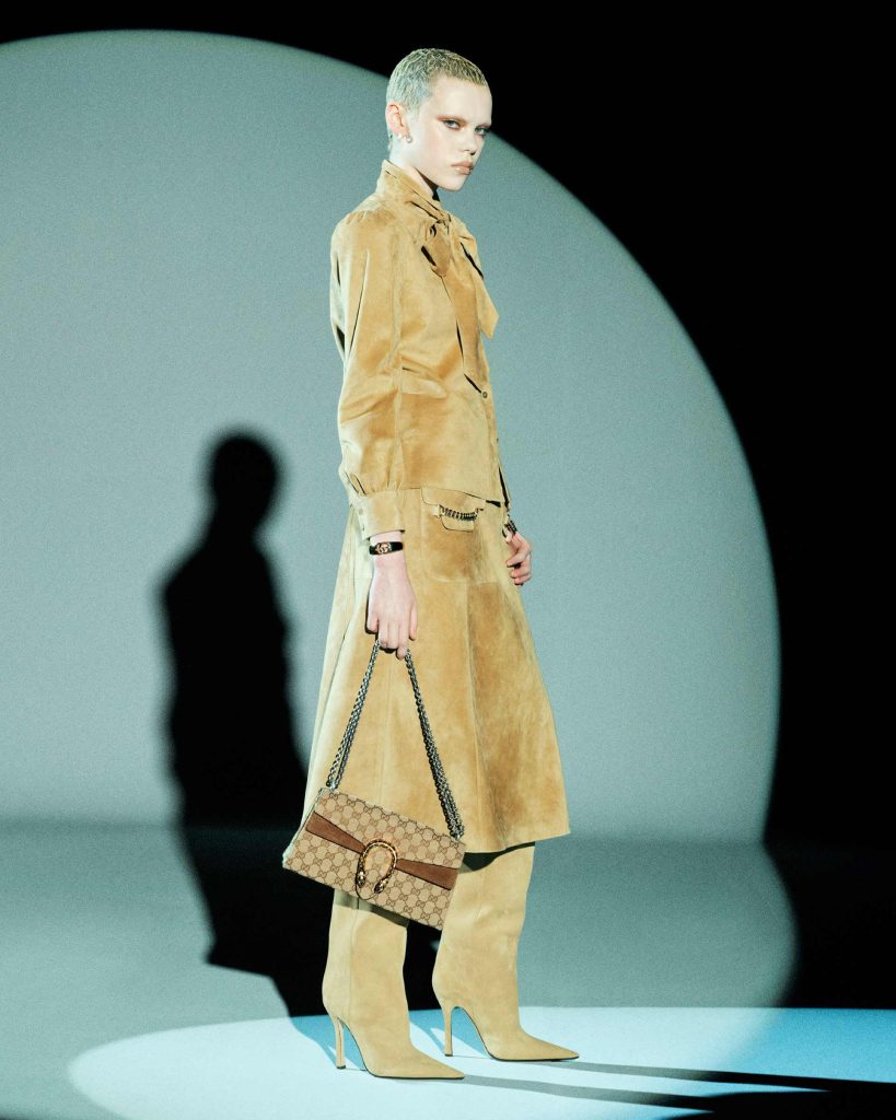 Across the industry, Gucci and its newly installed creative lead, Demna, rewound the clock to the brand’s ’90s edge: sharp suiting, slinky leather, and a kind of self-assured cool that doesn’t raise its voice because it doesn’t have to.