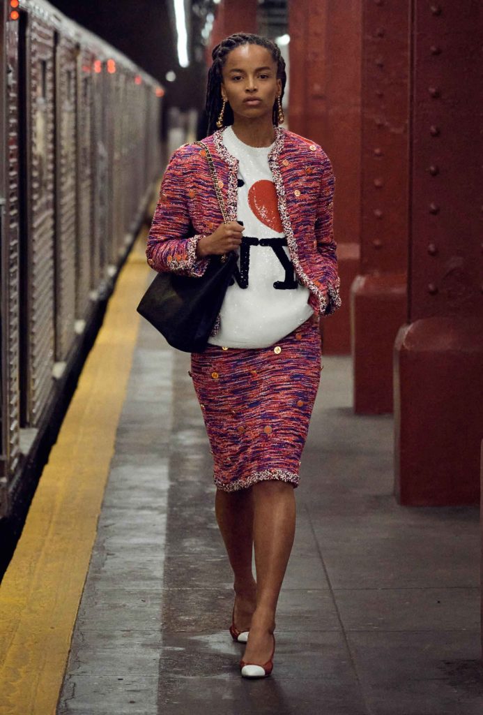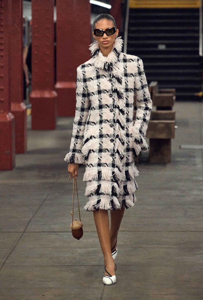At Chanel, creative director Matthieu Blazy turned a New York subway station into a glittering catwalk of leopard tweeds, feathered hems and urban-myth glamour—a love letter to the city’s many characters, rendered through the meticulous hand of the house’s métiers.