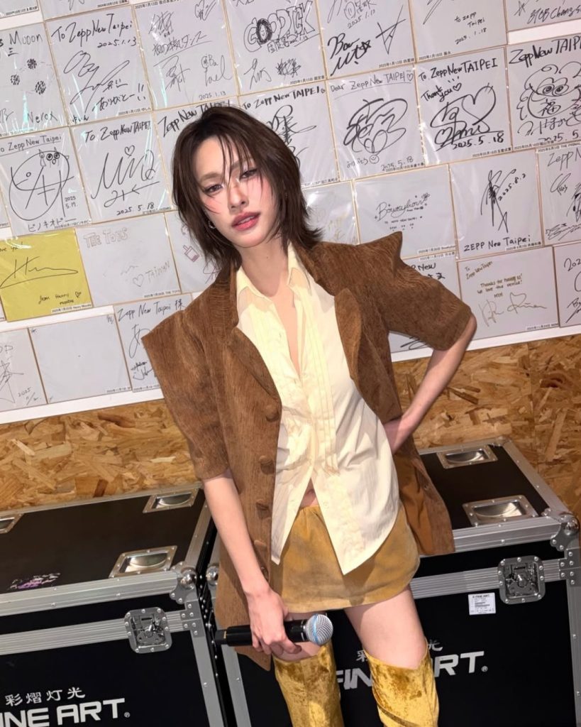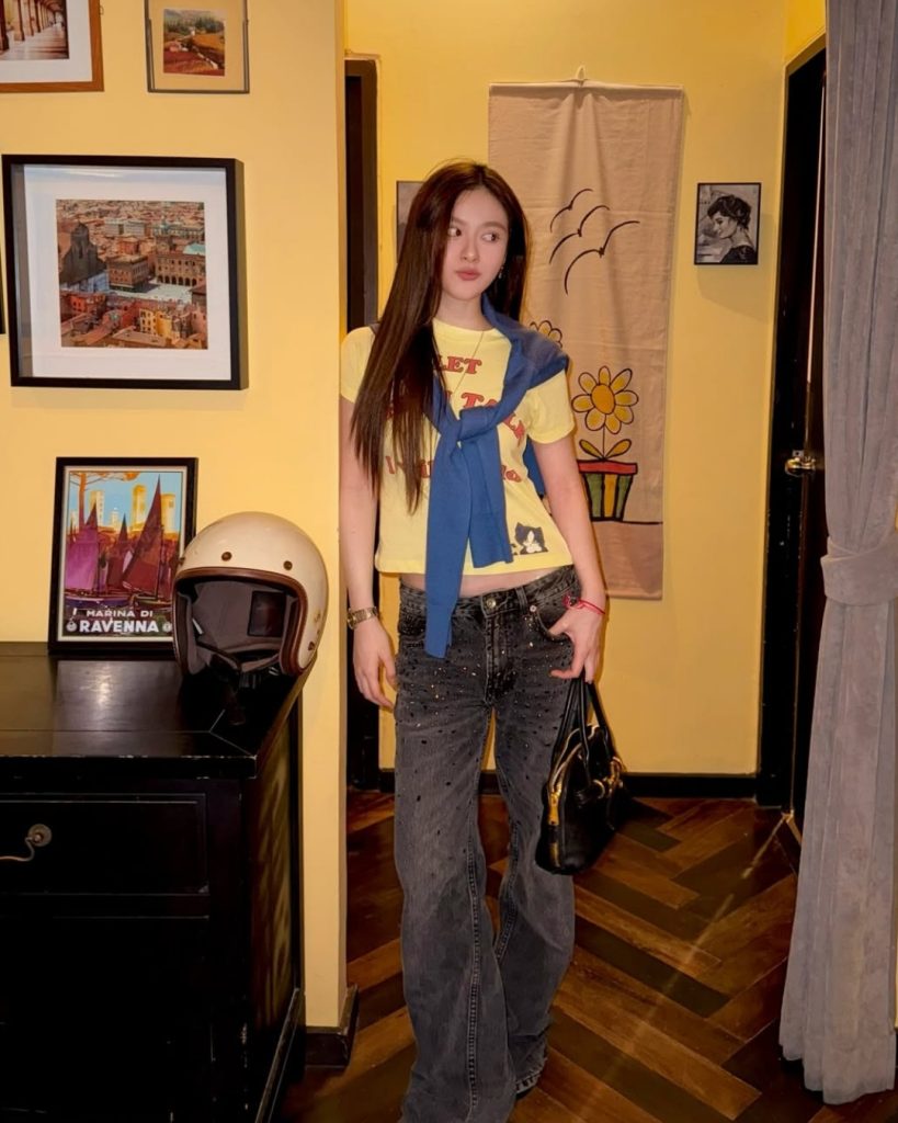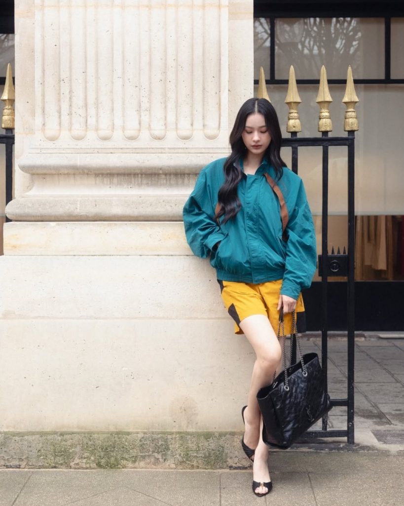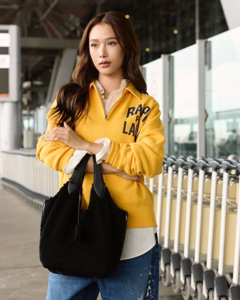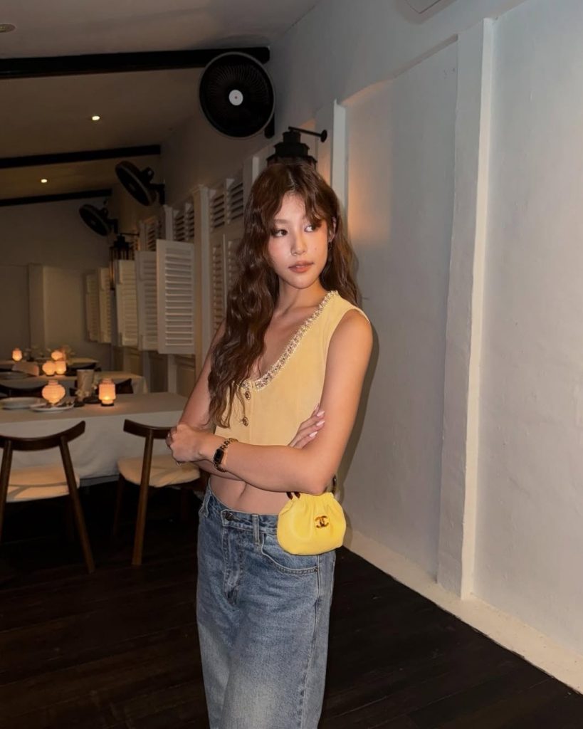 While spotlight-stealer yellow works magic on performances and front rows, it is also a colour that can be incorporated effortlessly into a daily wardrobe, even for the staunchest “black only” believer. The simplest way to style it? Pair it with denim, as Baipor Thitiya and Yuna from Itzy have done. The main difference between their looks lies in their choice of accessories. Although both opted to finish their outfits with Chanel bags, Baipor’s palm-sized mini pouch in matching yellow imparts an elegant sensibility, while Yuna’s classic 2.55 in red—clashing with her yellow top—delivers a bold street-style statement.