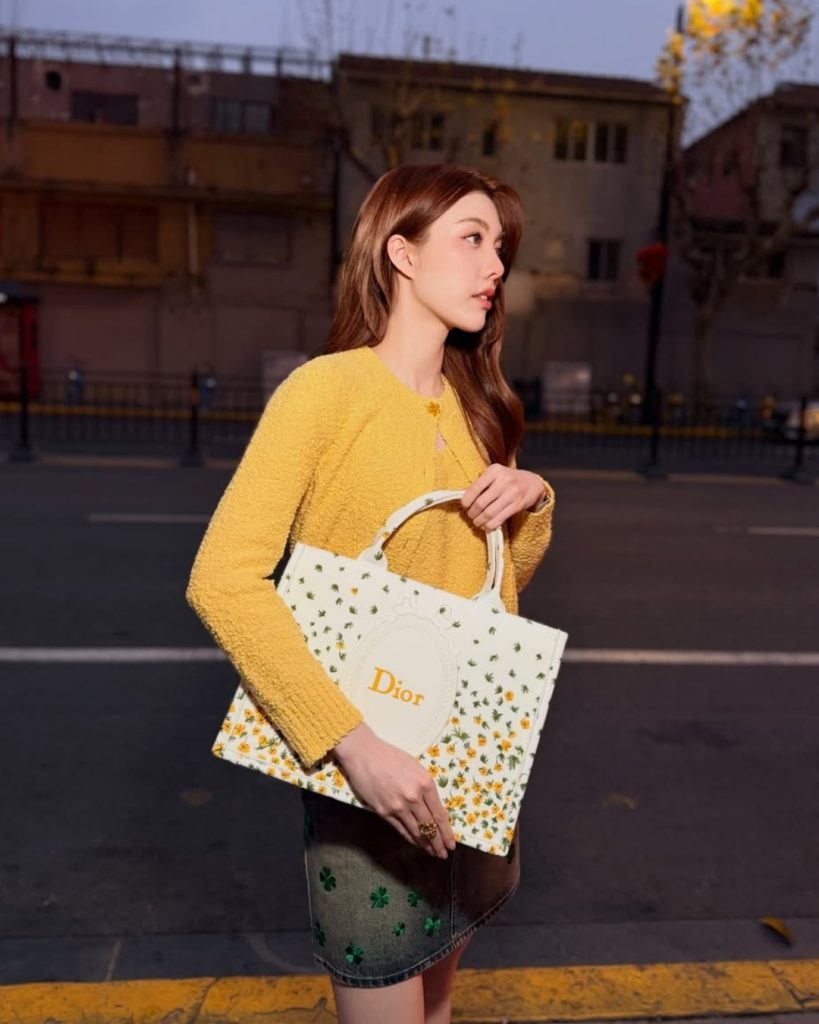 Given that Thailand and Malaysia share similar climates, it is only natural to look to Thai celebrities for styling cues. Tu Tontawan teams a yellow top with fluffy headwear trimmed in the same hue; Becca Armstrong opts for a neutral palette, framing brown and yellow together; Milk Pansa pairs a cyan blue jacket with playful yellow shorts, finished with open-toe heels; while Orm Kornnaphat layers a yellow cardigan over a mini skirt, accessorising, of course, with a Dior Book Tote patterned with buttercup motifs.