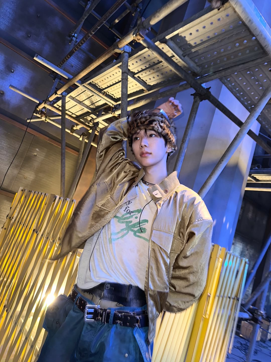 For those who prefer a hint of the hunt, leopard print in accessories provides the perfect provocative accent. It’s a touch of whimsy and daring that personalises any ensemble. V of BTS—long known for his fondness for the print—-showcased its elegant potential, tying a leopard-print scarf beneath a tonal beige coat, adding a layer of playful intrigue to an otherwise quiet and refined look. Similarly, Shotaro of RIIZE infused his casual streetwear ensemble with a jolt of personality by topping it with a playful leopard-print furry hat, proving that even the smallest spot of leopard can transform an entire attitude.