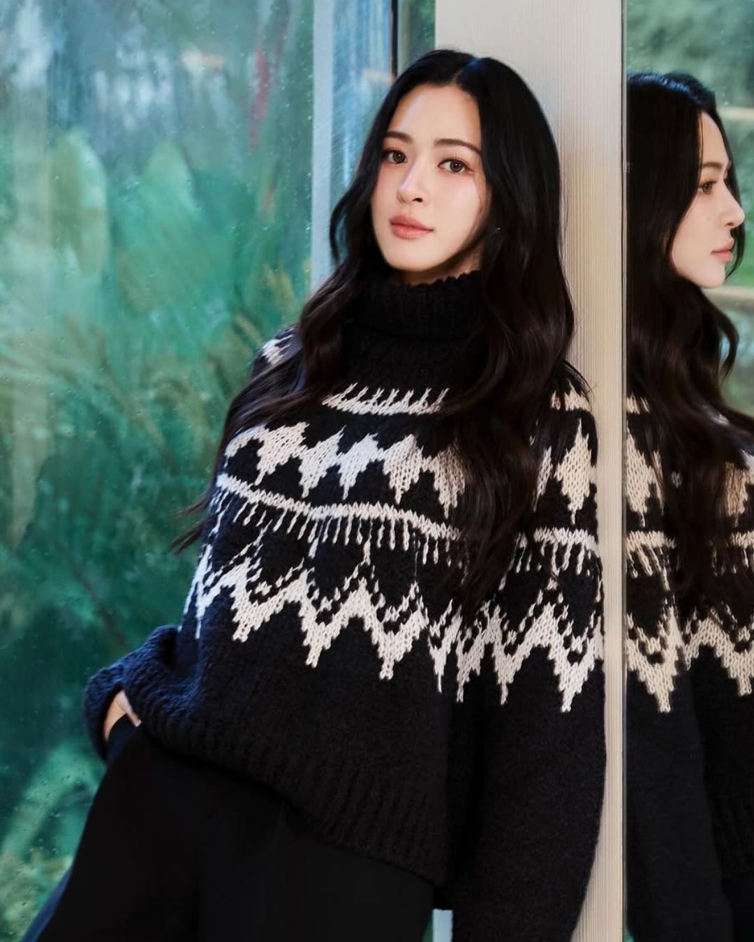 Beyond colour, pattern is also a powerful tool. Think beyond classic cable knits and catch attention with stripes or argyle. An oversized red striped sweater, as seen on Milk Pansa or Ive’s Yujin’s cardigan with contrasting blue and brown diamond patterns, offers an instant visual interest. For those who prefer a timeless piece with a rich heritage touch, look to the Fair Isle pattern. With roots tracing back to Scotland, this motif is a wardrobe staple, and how Lingling Kwong wears it proves that, despite its storied past, the Fair Isle can be a head-turner too.