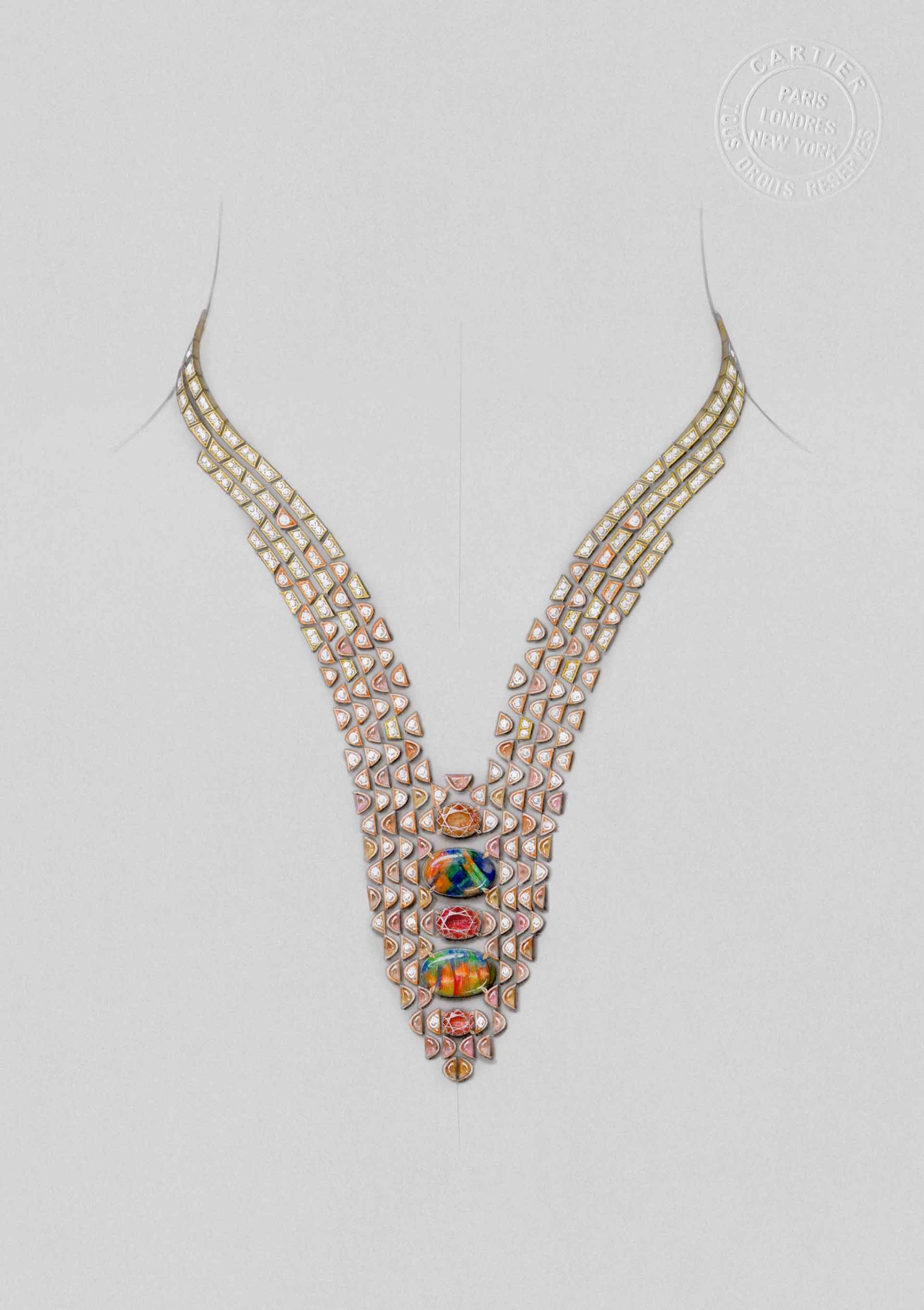 High jewellery often begins with a dream, but at Cartier, it begins with the stone. For the Cafayate necklace, that meant two spectacular opals—alive with flashes of red, orange, and yellow—that instantly set the creative tone. “Everything starts with the stone—literally,” Alexa Abitbol, Cartier’s high jewellery manufacture director, told us during a recent visit to the maison’s closely guarded high jewellery ateliers in Paris. “Once the stones arrive, the designers choose what speaks to them. Then they draw around the stones.”