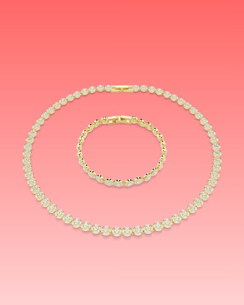 The Millenia collection features Swarovski’s iconic octagon-shaped crystal, with endless rows of precision-cut stones, crafted with rhodium plating. The design is strong and bold, perfect for a confident girl who loves to bust a move on the dance floor. The Millenia collection also lends itself to layering, with matching necklaces or multiple bracelets. With its striking play of light, the pieces here can elevate any outfit, day or night.