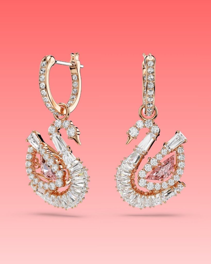 Sometimes, the joy of gifting is seeing the smile on someone’s face. Giving a sparkling gift to someone who brings joy makes it extra special. The Una Angelic set is perfect—a gold-tone plated set where each piece features a surround of round-cut crystals, framed by a halo of clear pavé. The necklace and bracelet motifs are dainty and elegant, with foldover clasps for a seamless closure and adjustable extenders for comfort and fit. For a more delicate touch, the iconic Swarovski swan offers a soft, elegant silhouette, also pairable with matching earrings.